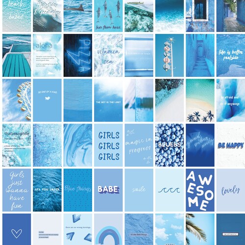 60 Images Blue Aesthetic Collage Kit Aqua Blue Dorm Room Etsy
